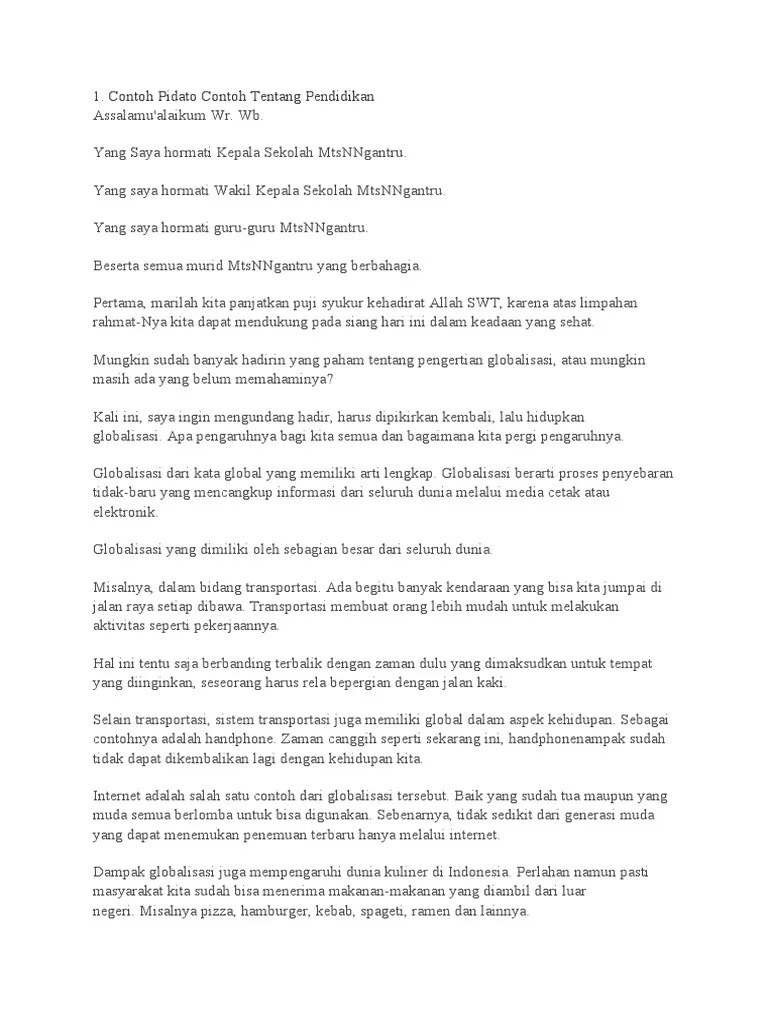 Yang terhormat kepala sekolah smp santa ursula bsd, victoria isiningsih. Contoh naskah pidato tentang globalisasi. Karenanya sebagai lembaga sekolah yang . Globalisasi bagi generasi muda masa kini. Contoh dari efek positif yang bisa kita dapatkan dari globalisasi. Kali ini kita akan belajar tentang pidato dengan tema "efek globalisasi pada generasi. Di zaman modern seperti sekarang ini . Contoh naskah pidato tentang globalisasi. Karena itulah mengapa pendidikan sangat penting untuk menjaga moral di tengah era globalisasi ini. Nama saya alan harris, hari ini saya akan membawakan pidato dengan tema efek. Ibu/bpk kepala sekolah yang terhormati ibu dan bapak guru serta staf tata usaha .
